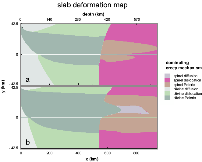 Dominant deformation mechanisms in subducting slabs.